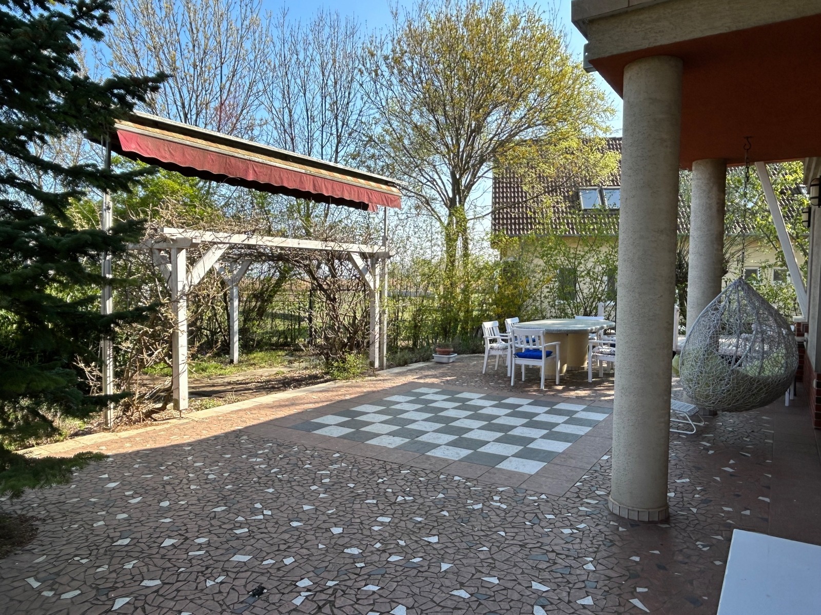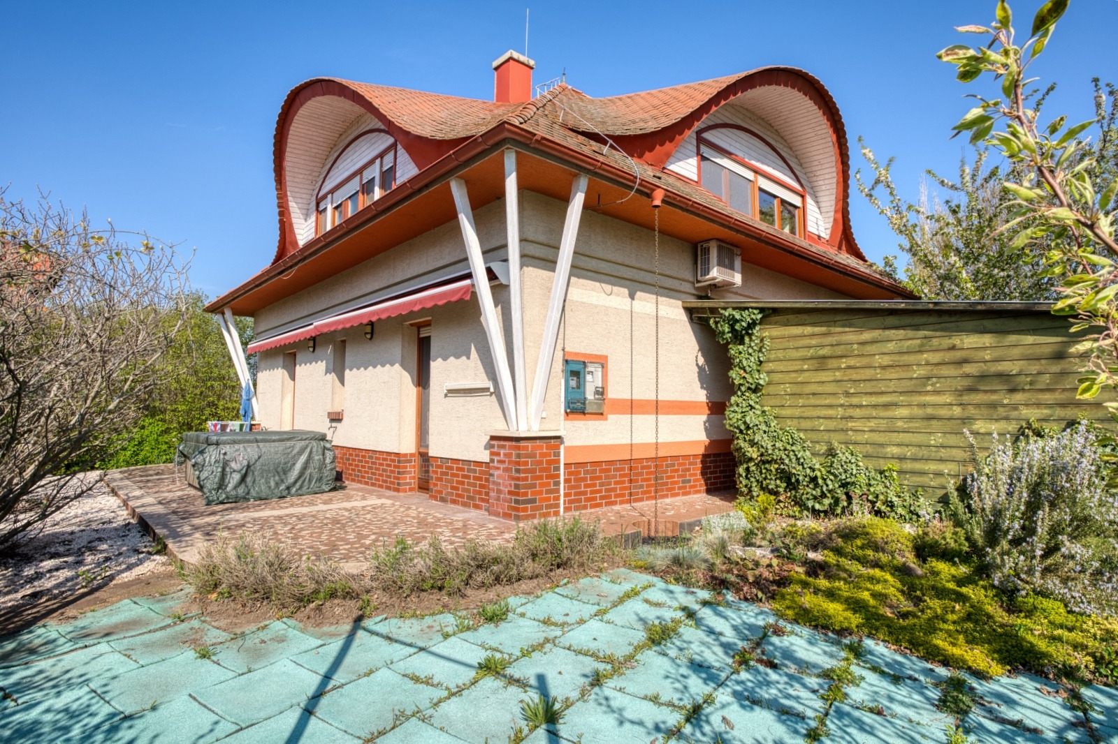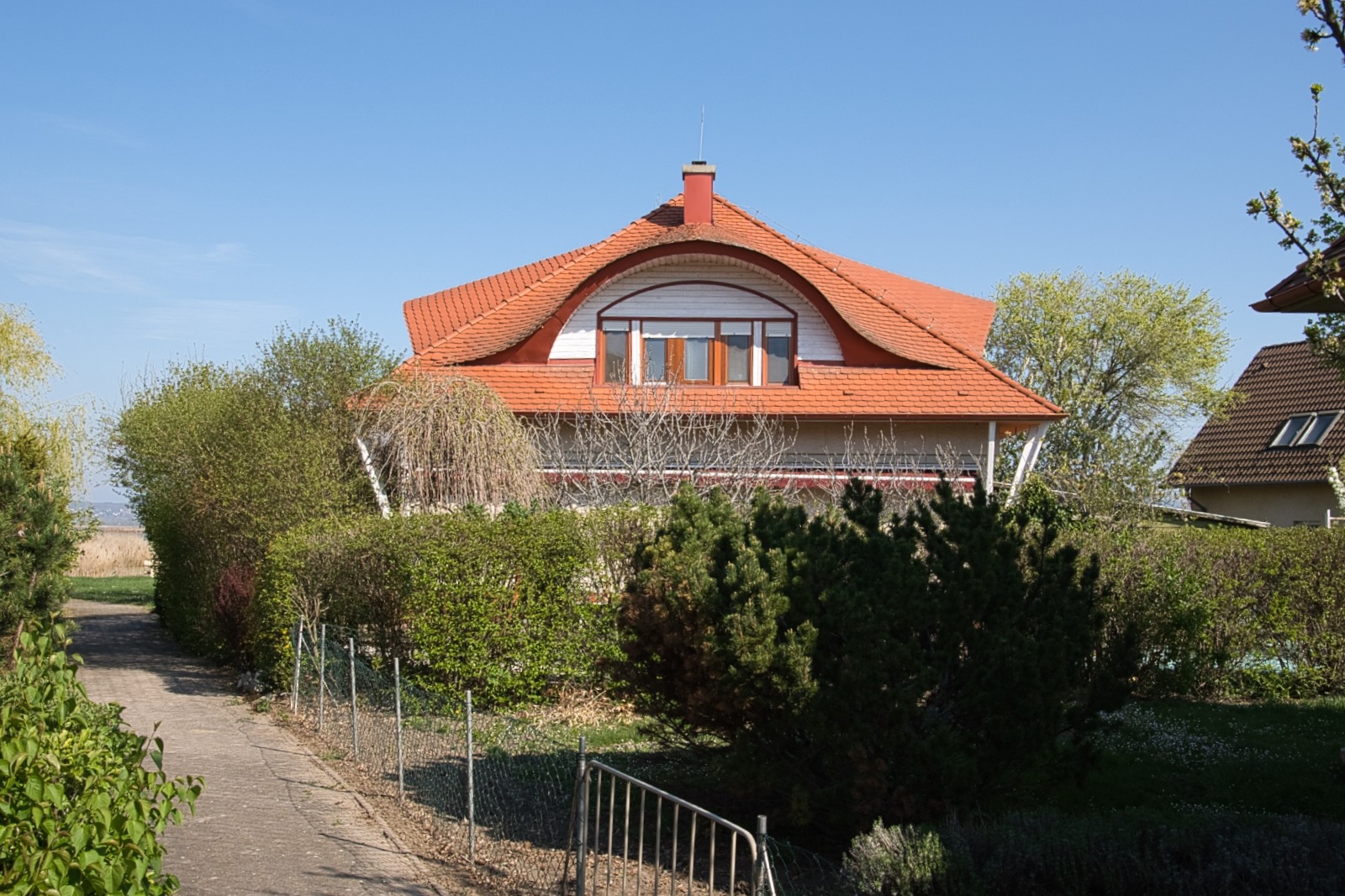Az ingatlanhoz 585 m2-es parkosított, fúrt kútról öntözhető, saját tulajdonú telekrész tartozik, továbbá a közös tulajdonban lévő tóparti területen csónakkikötő, stég, játszótér és kerti sütőhely található. Parkolás az ingatlanhoz tartozó kétállásos fedett beálló alatt lehetséges.