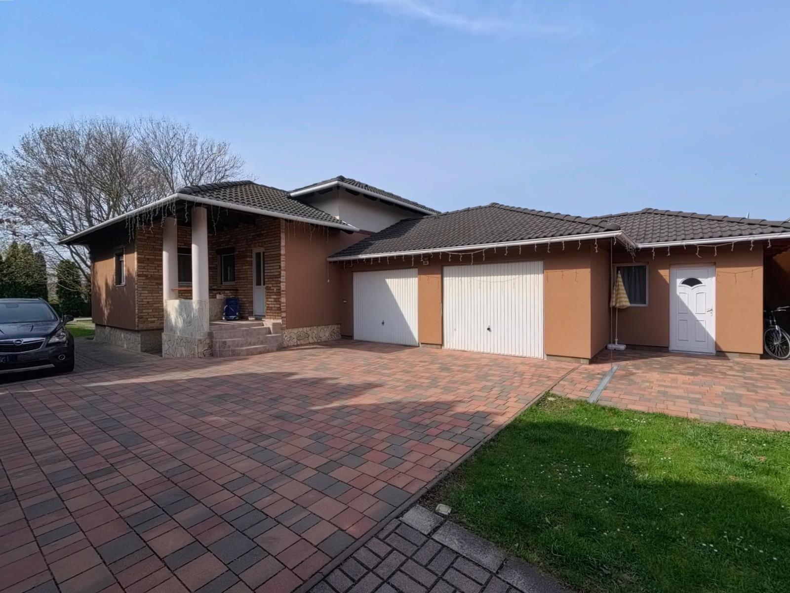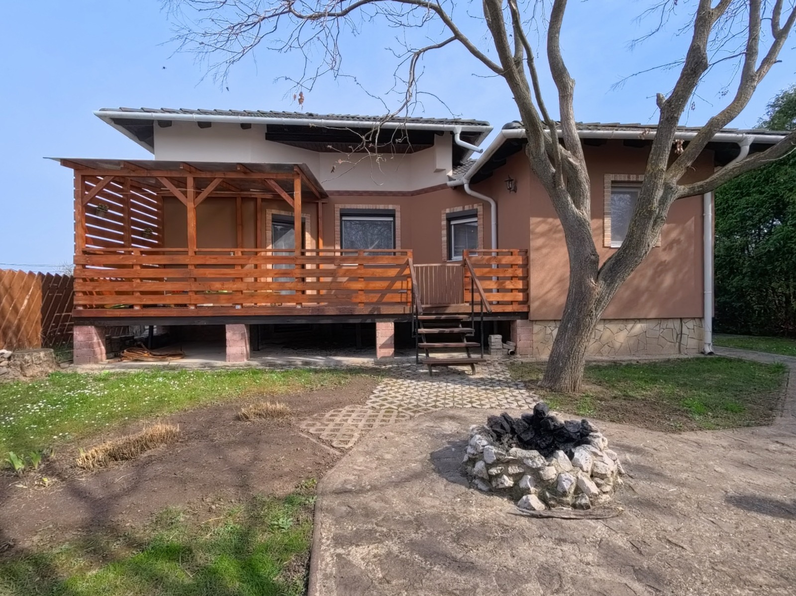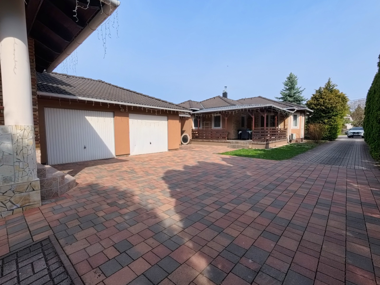 2001-ben épült, földszintes, 109 m2 nettó alapterületű, nappali + 3 szobás, gázcirkó-, és kandalló fűtéses, klimatizált könnyűszerkezetes családi ház, 25 m2-es terasszal.