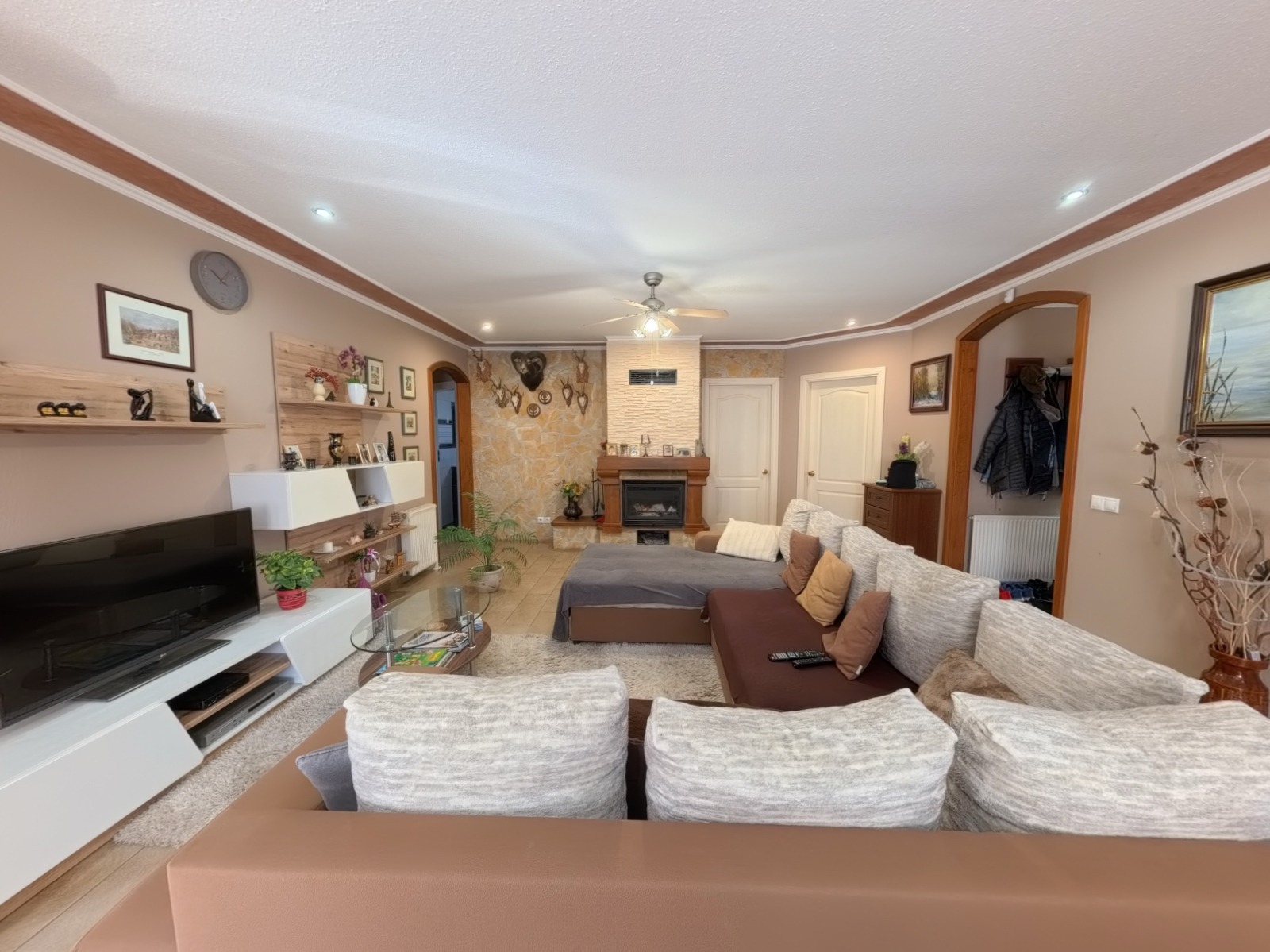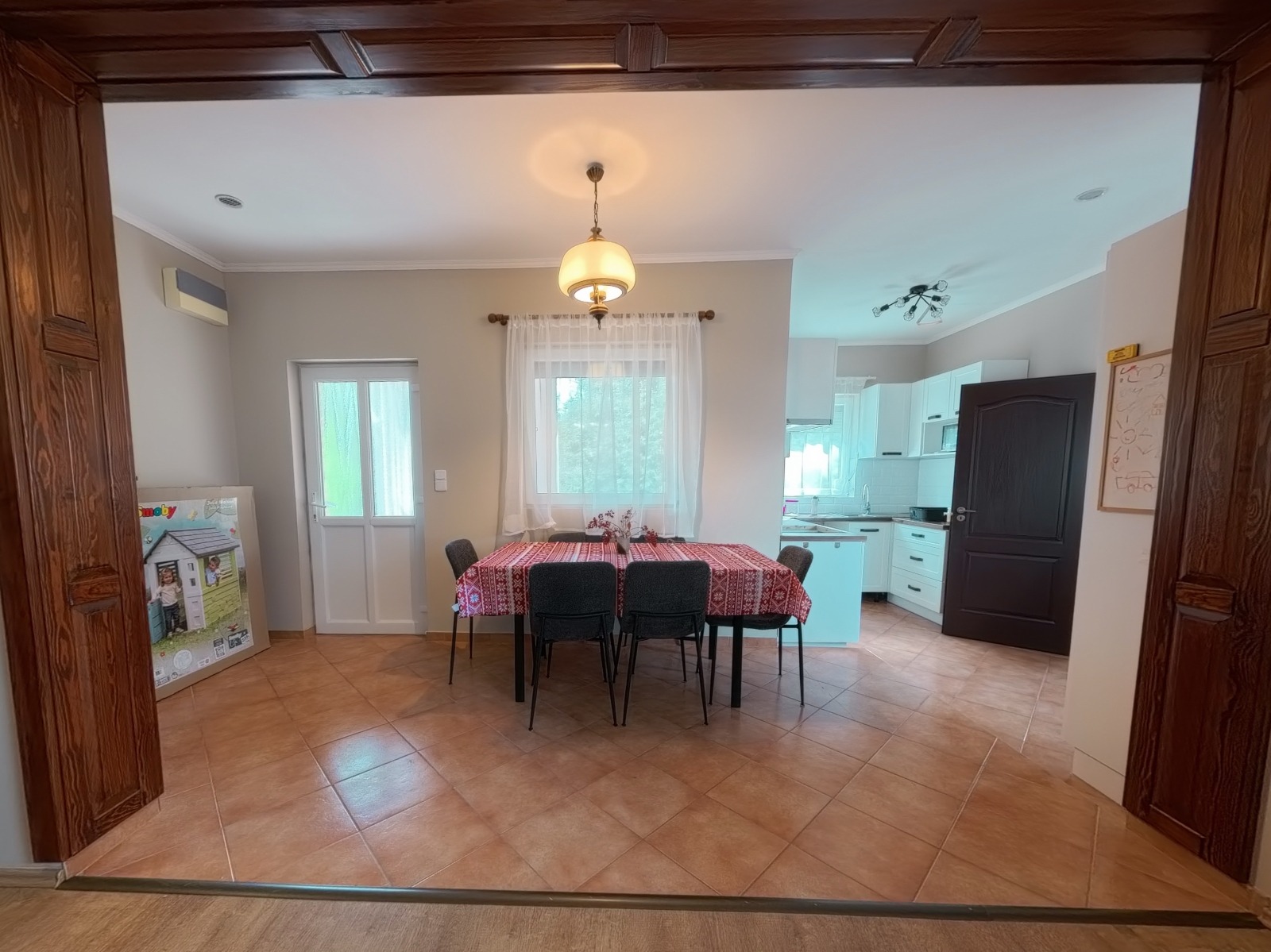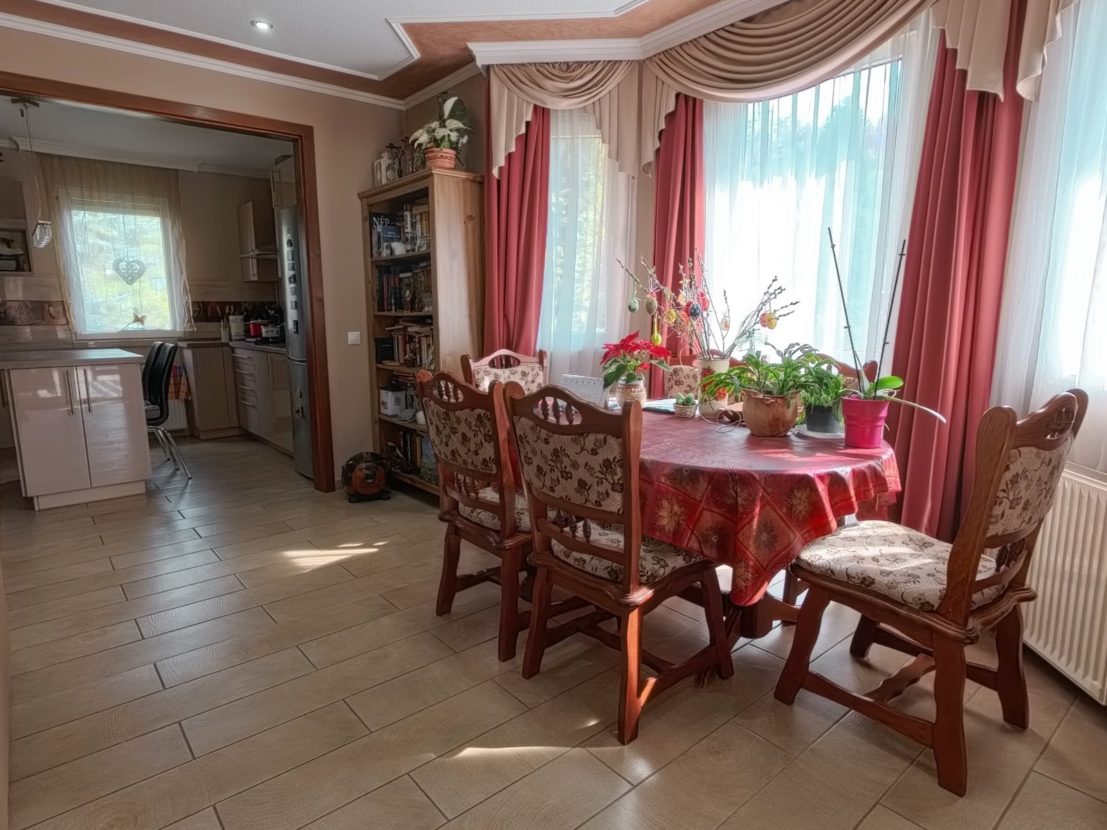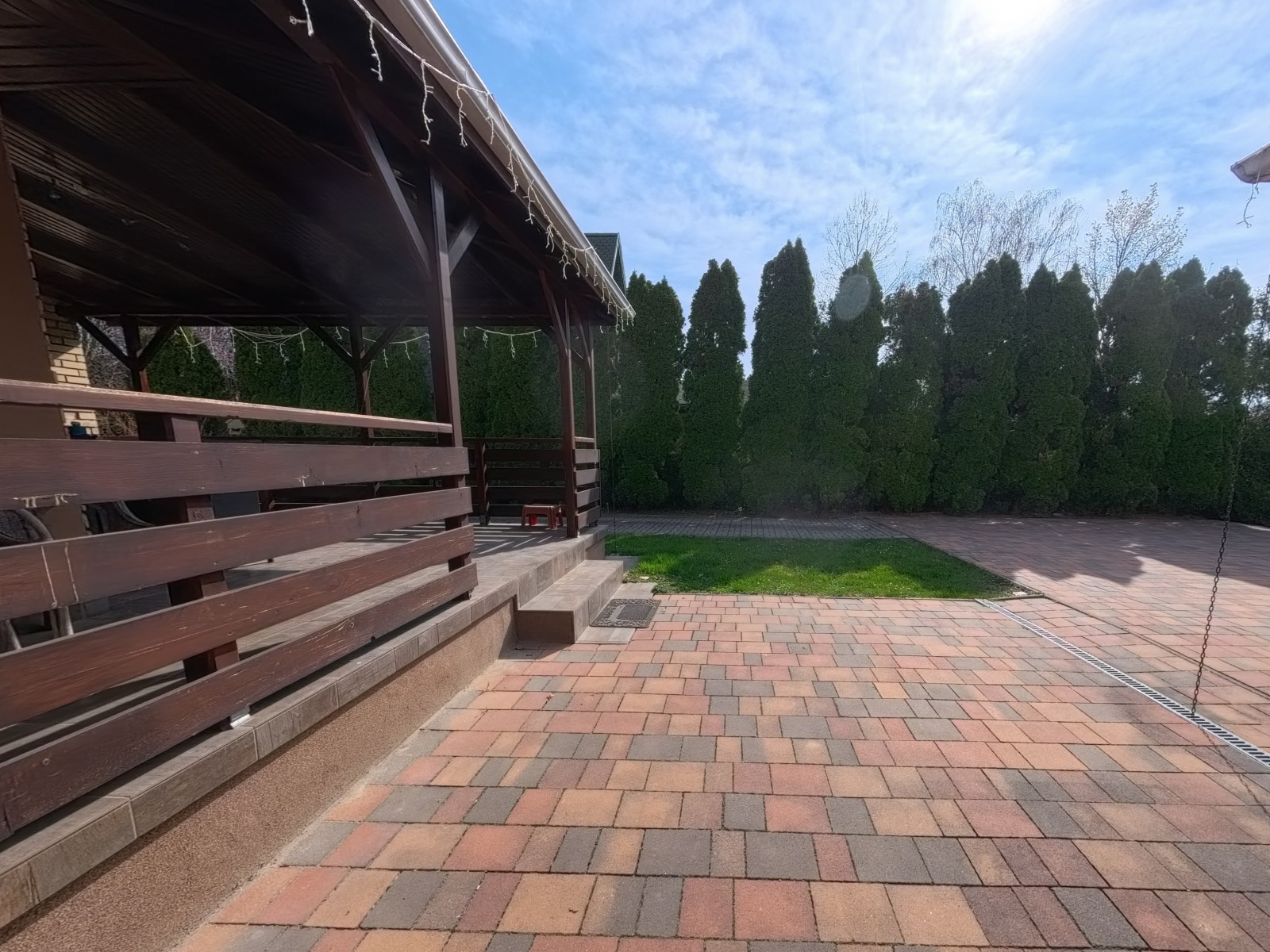 2001-ben épült, földszintes, 109 m2 nettó alapterületű, nappali + 3 szobás, gázcirkó-, és kandalló fűtéses, klimatizált könnyűszerkezetes családi ház, 25 m2-es terasszal.