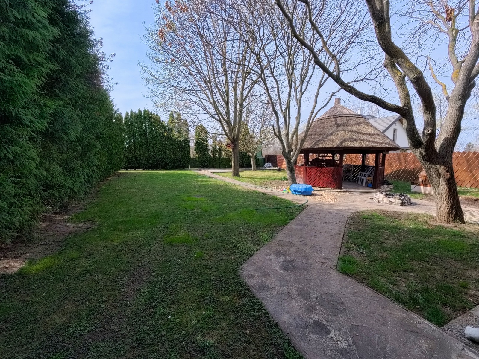 Az 1609 m2-es parkosított telken szaletli, fúrt kút, megkezdett (zsaluzott) medencének kialakított terület, kerti tároló, a telek végén gondozott gyümölcsfás-, és konyhakert található.