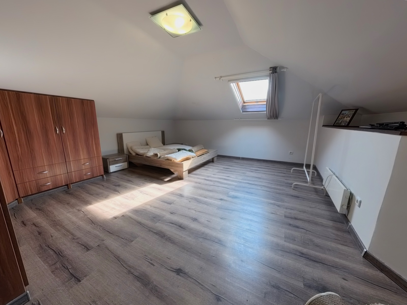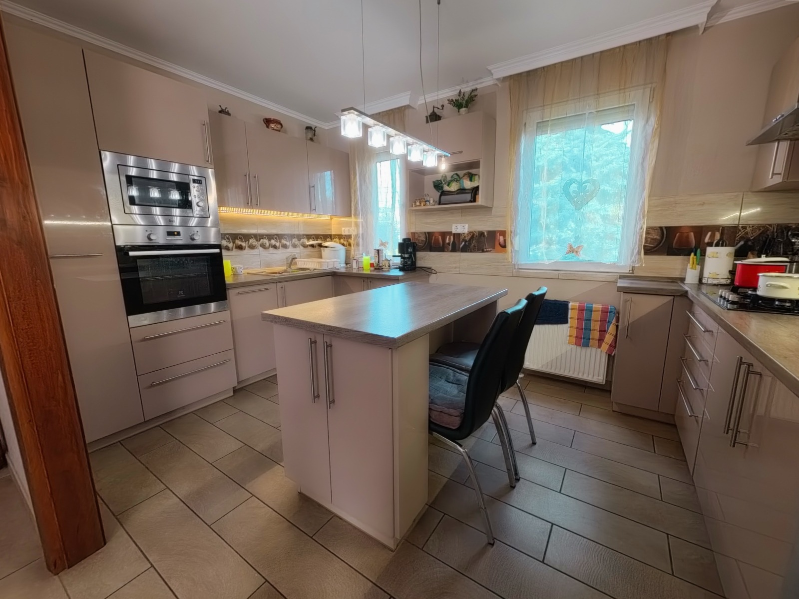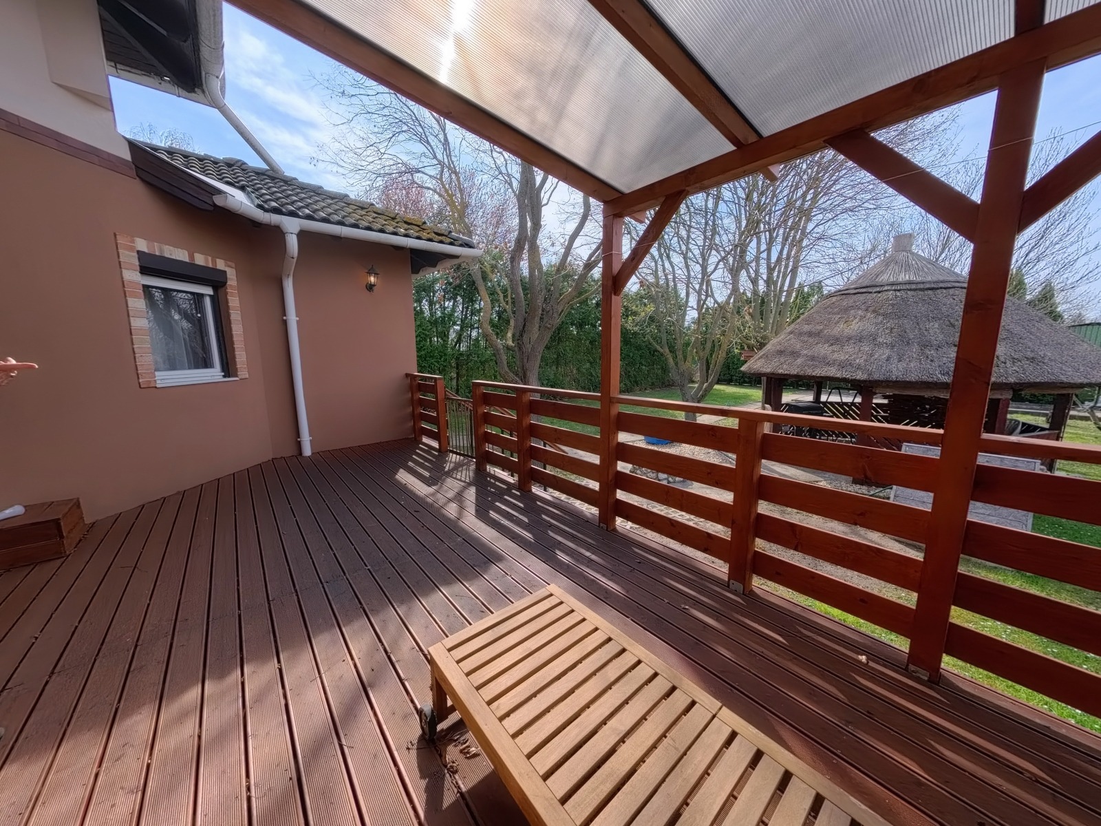 2015-ben épült, háromszintes, 80 m2-es, tégla szerkezetű, inverteres klímákkal és fűtőpanelekkel fűthető, nappali + 1 szobás ház, 20 m2-es pincével, fedett terasszal.